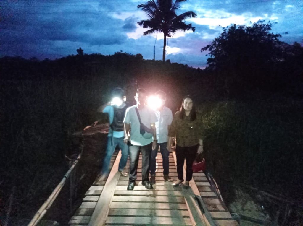 Foto: Rombongan Neneng,M.Sos, dan Arkadius Daniel Kepala Desa Lulang meninjau langsung jembatan darurat penghubung Desa Setia Jaya-Lulang, Senin 8/11/2021. Pukul 17:00 Wib.