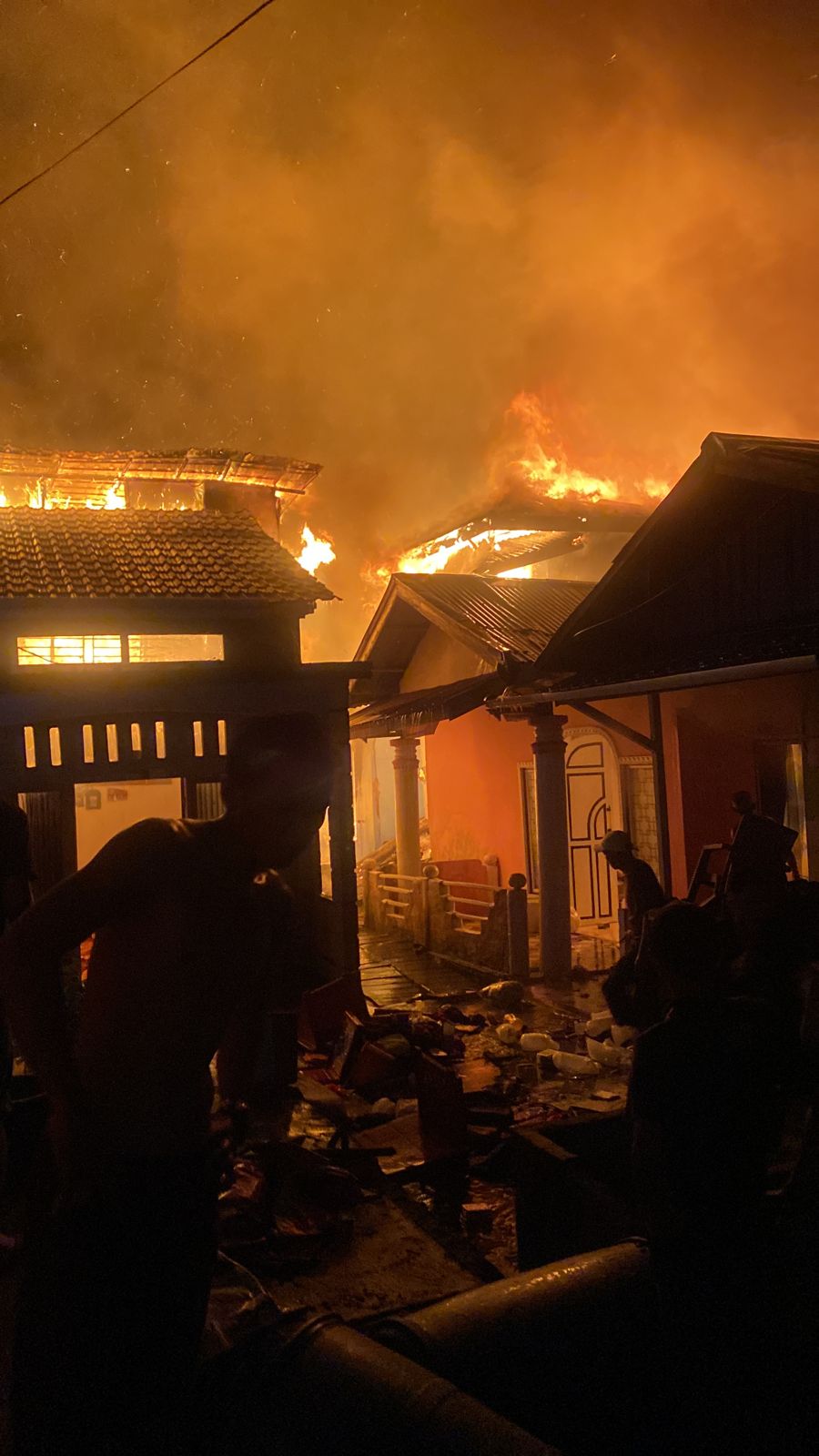 Api itu berawal dari rumah Syahrudin kemudian berjangkit satu dengan yang lain, hingga korban rumah terbakar ada 8 unit,