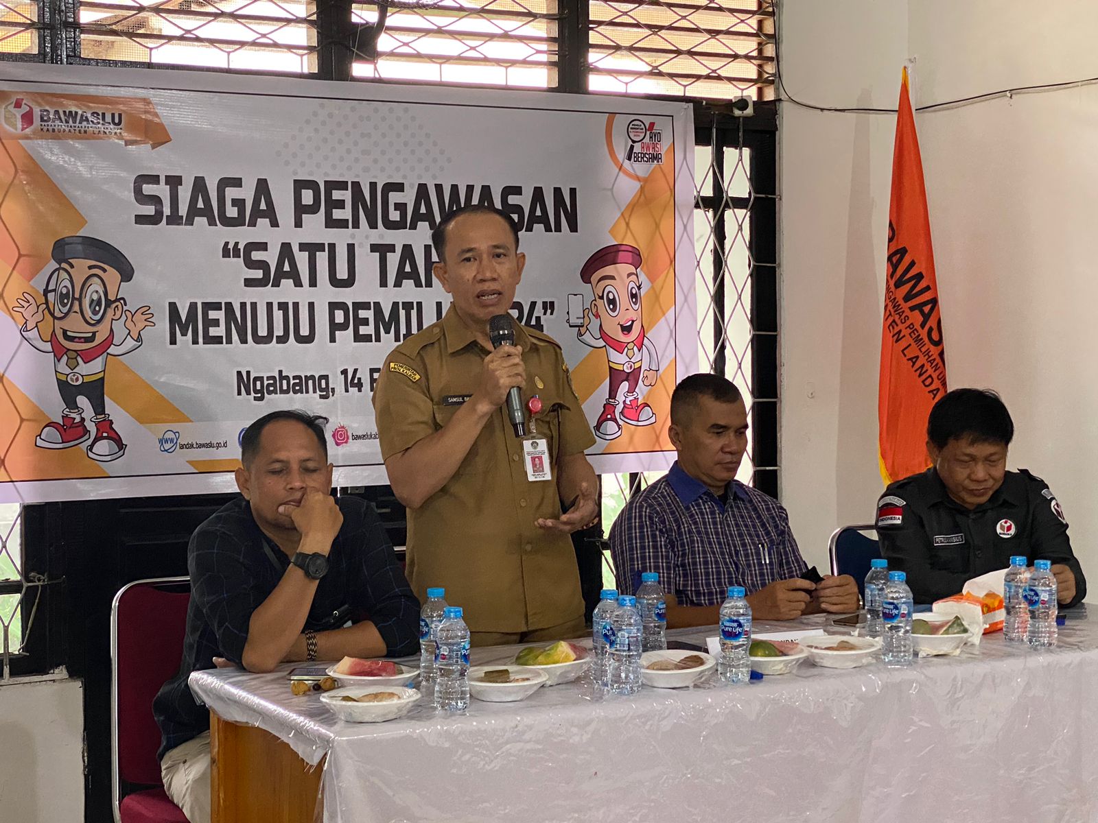 Bengkayang Post-(Landak). Kepala Badan Kesatuan Bangsa dan Politik (Kesbangpol) Kabupaten Landak Samsul Bahri, S.Pd, M.Si mewakili Pj. Bupati Landak menghadiri Kegiatan Siaga Pengawasan Satu Tahun Menuju Pemilu 2024 yang diselenggarakan oleh Bawaslu Kabupaten Landak, di Kantor Sekretariat Bawaslu Kabupaten Landak, Selasa (14/02/2023).