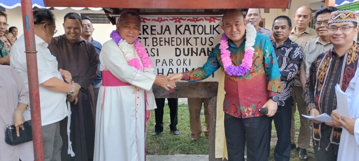 Bengkayang Post-(Landak). Pj. Bupati Landak Samuel,SE.,M.Si meresmikan Gereja Katolik St. Benekditus Stasi Dunan paroki St. Yohanes Pemandi Pahauman dan di berkati oleh Keuskupan Agung Pontianak, di Desa keranji pak idang Kecamatan Sengah Temila, Kabupaten Landak dan diberkati oleh Uskup Agung Pontianak Mgr. Agustinus Agus. Selasa (11/07/23).