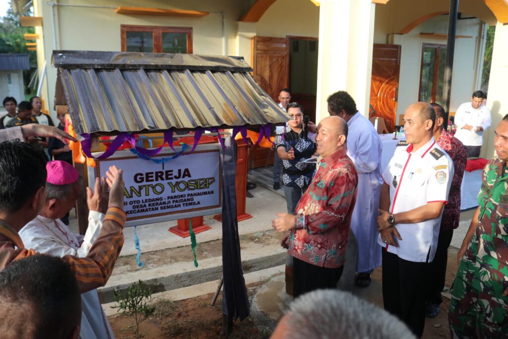 Bengkayang Post-(Landak). Pj. Bupati Landak Samuel, SE, M.Si menghadiri Peresmian Gereja Katolik Santo Yosef Stasi Oto Ledang Paroki St. Yohanes Pemandi Pahauman Keuskupan Agung Pontianak yang diberkati oleh Uskup Agung Pontianak, di Dusun Oto Ledang, Desa Keranji Paidang, Kecamatan Sengah Temila. Rabu (12/07/2023) sore.