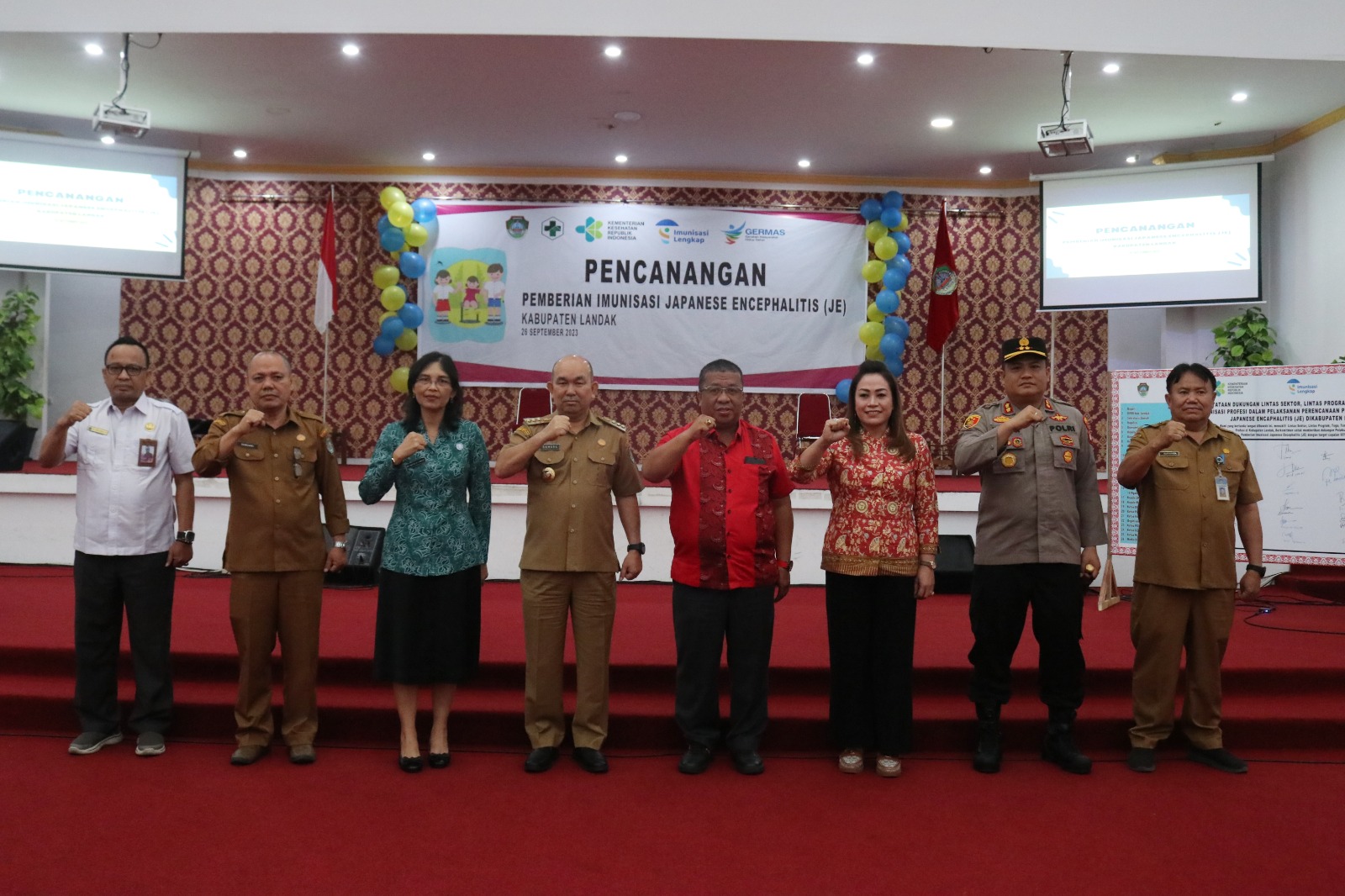 Bengkayang Post-(Landak). Pemerintah Daerah Kabupaten Landak melalui Dinas Kesehatan Kabupaten Landak melaksanakan Pencanangan Imunisasi Japanese Encephalitis (JE) Kabupaten Landak. Kegiatan tersebut merupakan rangkaian dari kegiatan Pencanangan Introduksi Imunisasi Japanese Encephalitis (JE) Tahun 2023 yang diselenggarakan oleh Dinas Kesehatan Provinsi Kalimantan Barat, di Aula Besar Kantor Bupati Landak. Selasa (26/09/2023).