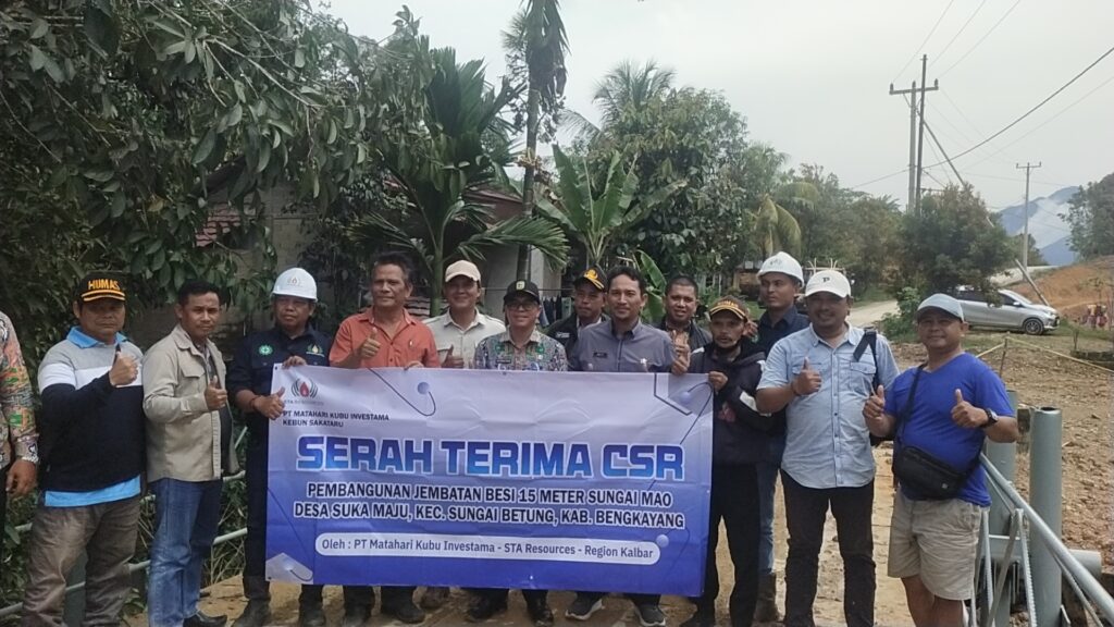 Bengkayang Post-(Sungai Betung). Jembatan Sungai Mao, Desa Suka Maju, Kecamatan Sungai Betung, Kabupaten Bengkayang diserah terima PT Matahari Kubu Investama- STA Resources Region Kalbar kepada Pemerintah Kabupaten Bengkayang yang diwakili Antonius Yewin selaku Camat Sungai Betung.