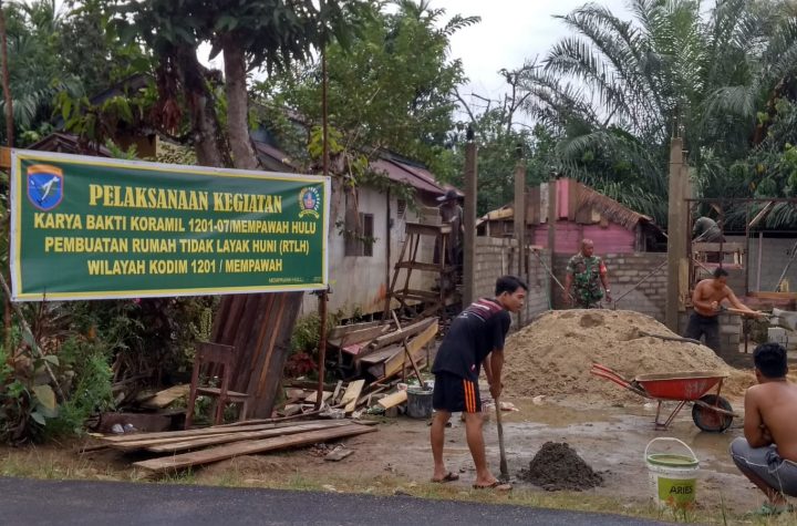 Bengkayang Post-(Landak). Personil Koramil 1201-07/Mempawah Hulu melanjutkan Rehab Rumah Tidak Layak Huni bersama masyarakat (RTLH) sudah tahap pemasangan batako untuk...