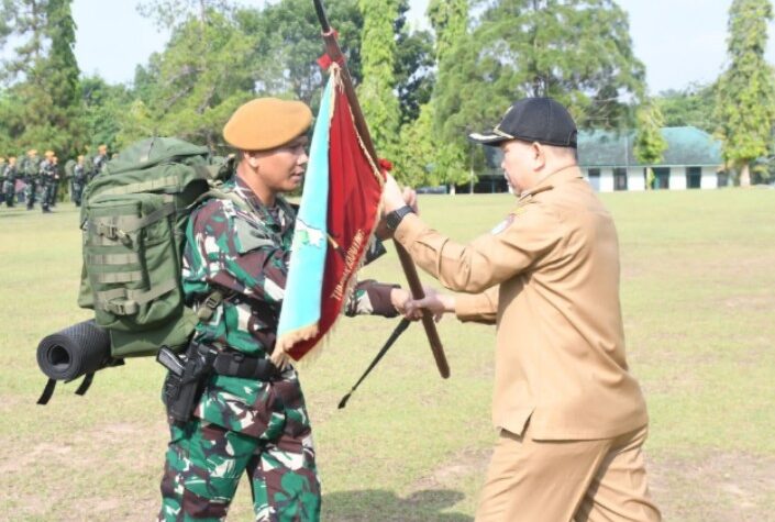 Bengkayang Post-(Landak). Pj Bupati landak Samuel, SE.,M.Si Bertindak Sebagai Inspektur Upacara Tradisi Pemberangkatan 350 Personel Satgas Pamtas RI-MLY Yonarmed 16/Tk,di...
