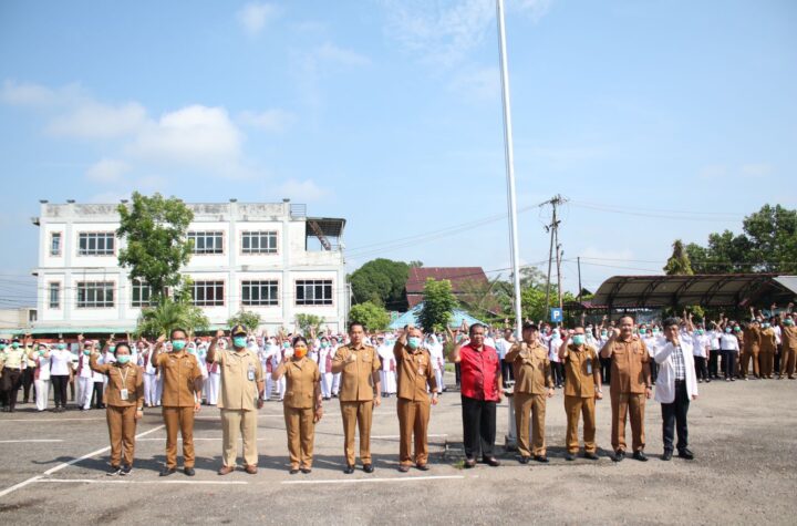 Bengkayang Post-(Landak). PJ.Bupati Landak Samuel, SE.,M.Si bertindak selaku pembina apel di RSUD Landak dalam agenda penandatanganan komitmen bersama dalam rangka...